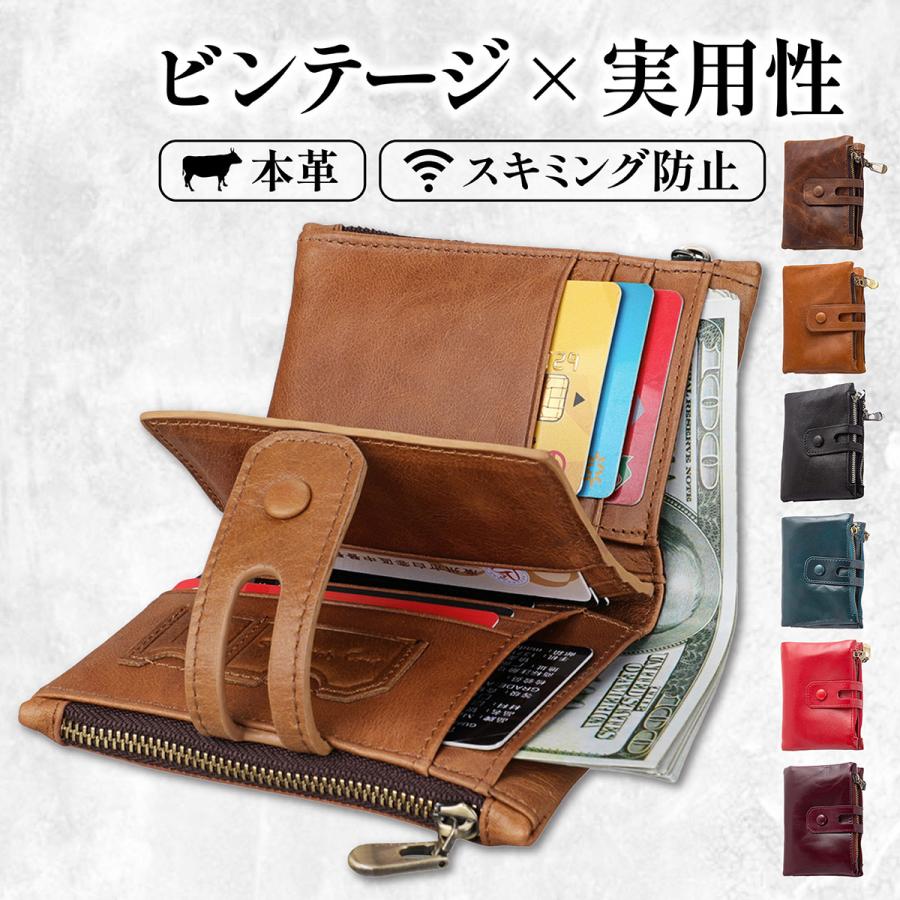 財布二つ折りメンズコインボックスカードケースファスナーレザー小銭入れコンパクトさいふおしゃれかっこいい高級カード収納 人気のファッションブランド